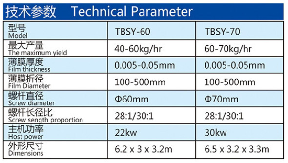 吹制各種規(guī)格的低密度聚乙烯、高密度聚乙烯和線性低密度聚乙烯塑料薄膜,廣泛應(yīng)用于食品百貨、日用、化工、針紡品、購物禮袋和工業(yè)包裝。機筒、螺桿采用38CrMoAl合金材料經(jīng)氮化處理精密加工而成,具有很好的耐磨和耐腐蝕性。