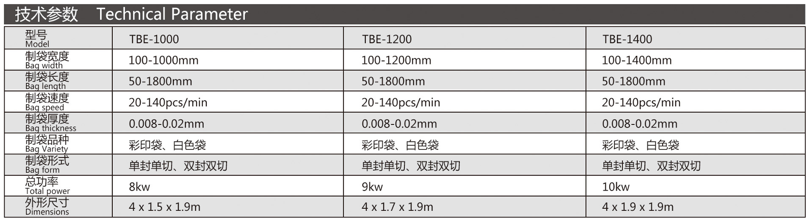 機器特性 該設備為引進國外先進技術結合國內同類產品的優點進行設計制造,集光、機、電儀于一體的全自動電腦制袋機。主要適用于PE、PP、PVC等多種熱熔性薄膜的制袋。具有光電控制自動放料、彩色印刷袋光電